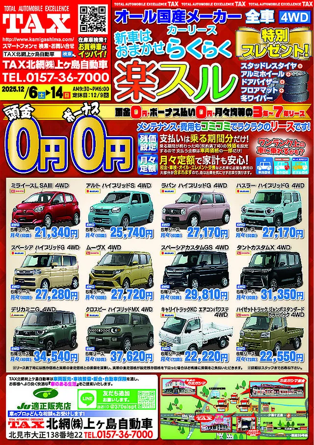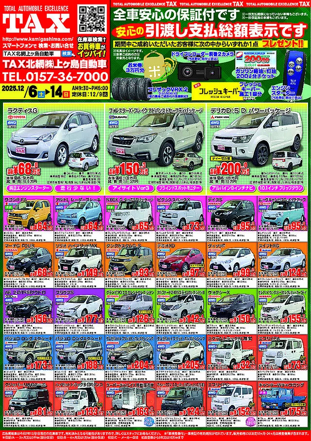 上ヶ島自動車では、全国チェーンの「買取のCOW-COW」と「販売のTAX」と提携しております。