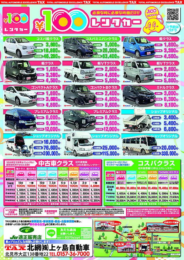 北海道北見市でレンタカーをお探しなら、【100円レンタカー北見店】にお任せください。