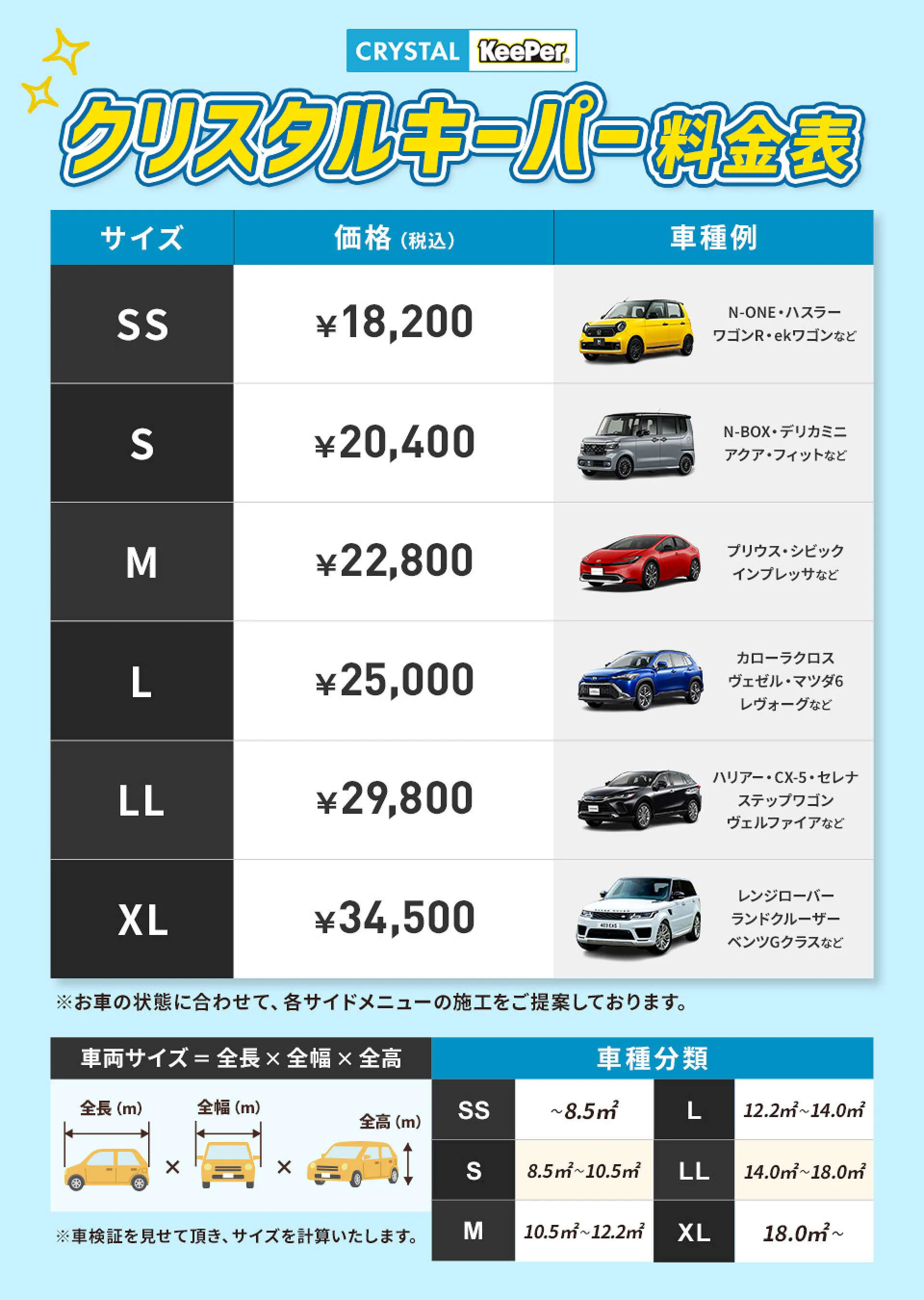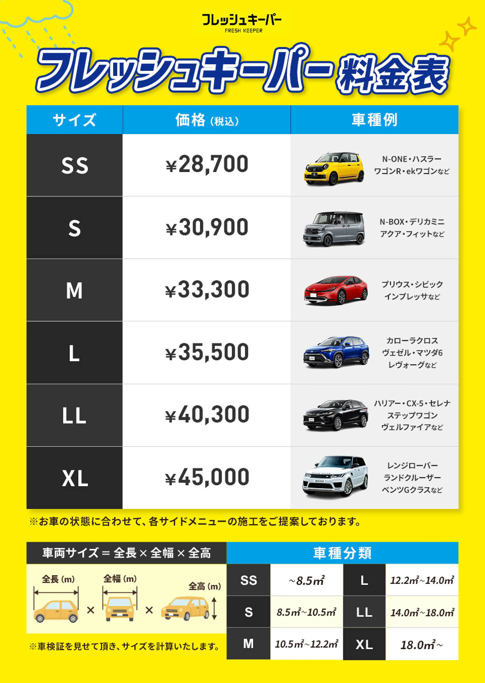 お車の状態に合わせてサイドメニューの施工をオススメしております。