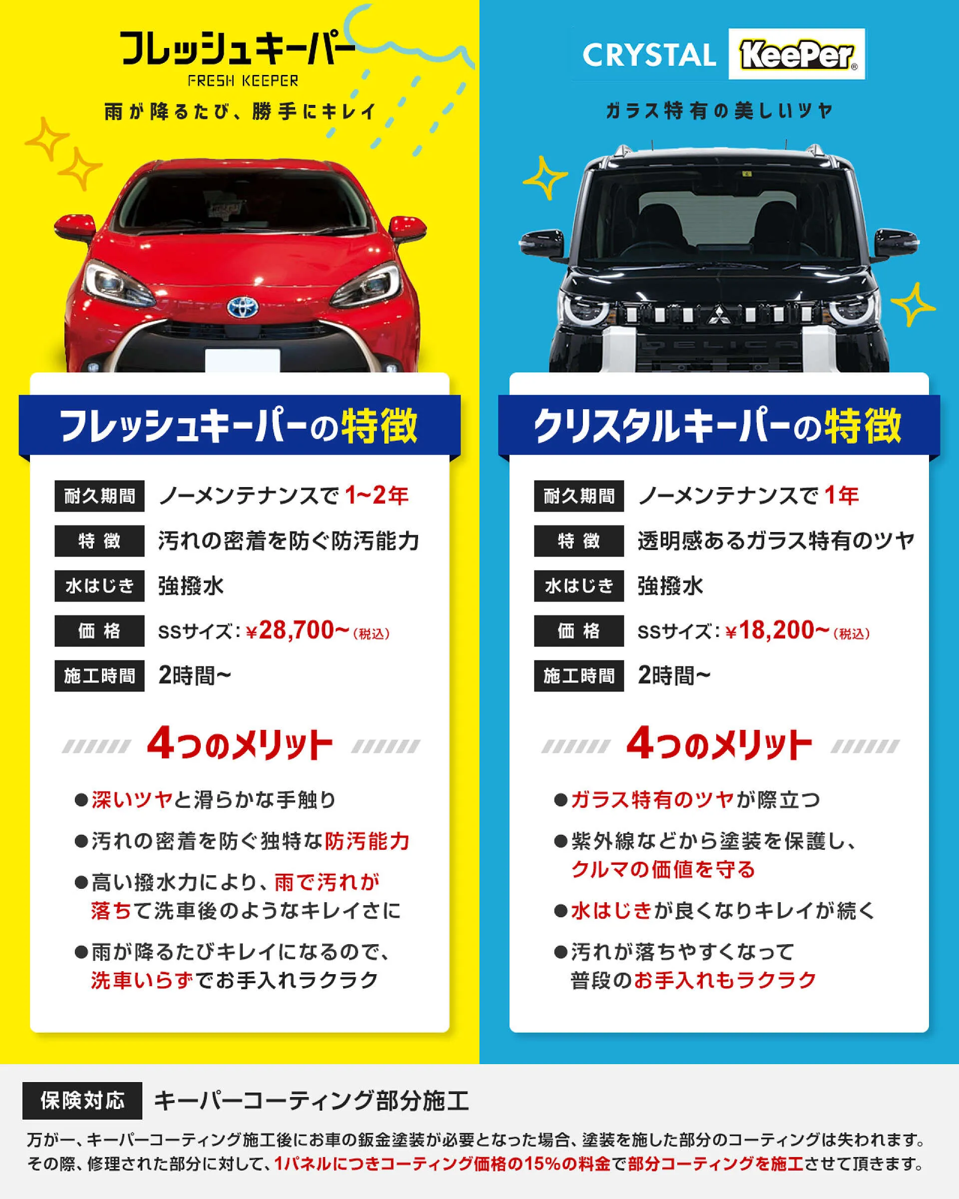 フレッシュキーパーとクリスタルキーパーは、どちらも紫外線による色褪せや、傷からボディを強固に保護します。