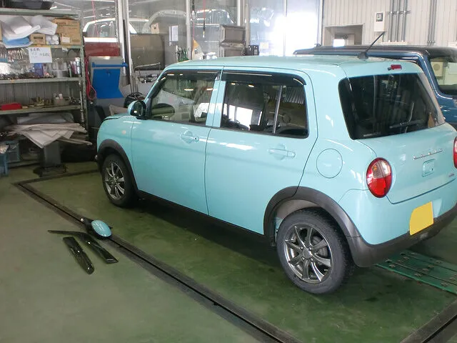 ラパン特有のパステル調ボディカラーは再現が難しく、調色作業にも高い技術が求められます。