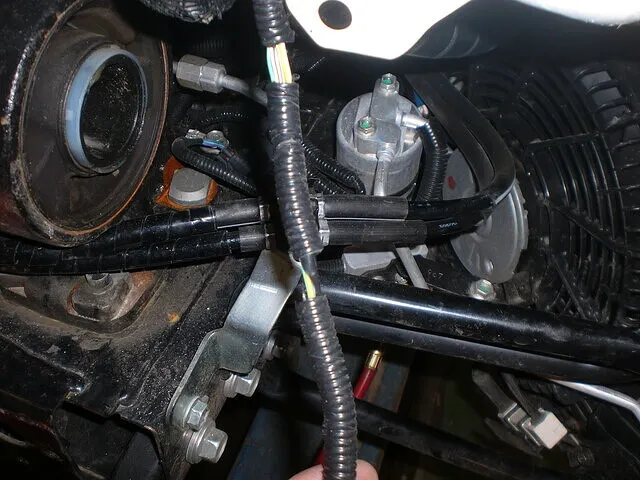 ハーネスや冷媒配管についても干渉や損傷の有無を細かくチェックし、内部構造まで影響が及んでいる可能性を視野に入れて検証を進めます。