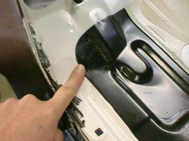 歪み修正後は防錆処理のため修正箇所にブラック塗装を施し、内部シール材処理も実施しました。