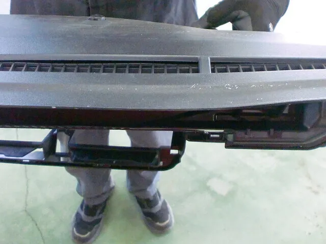 バンパー装着状態のままでも歪みが確認できるほどのダメージでした。