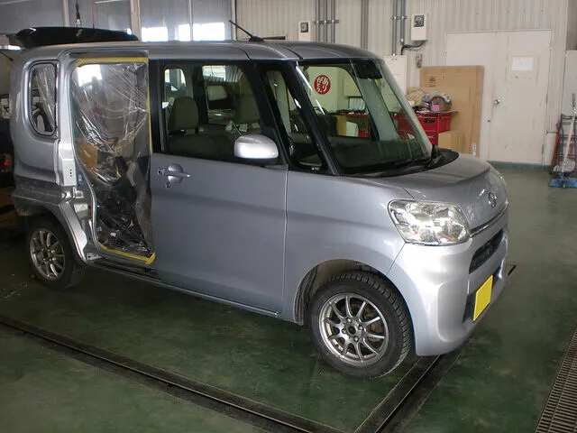 北見市 右側面修理・フレーム修正・エアコンコンプレッサー交換など 保険修理 ダイハツ タント│鈑金塗装