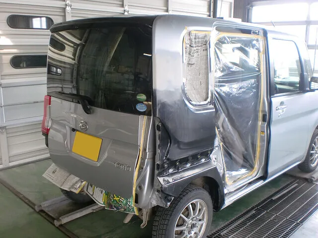 北見市 リアクォーターパネル・リアバンパー・リアドア修理 事故修理 日産 デイズ│鈑金塗装