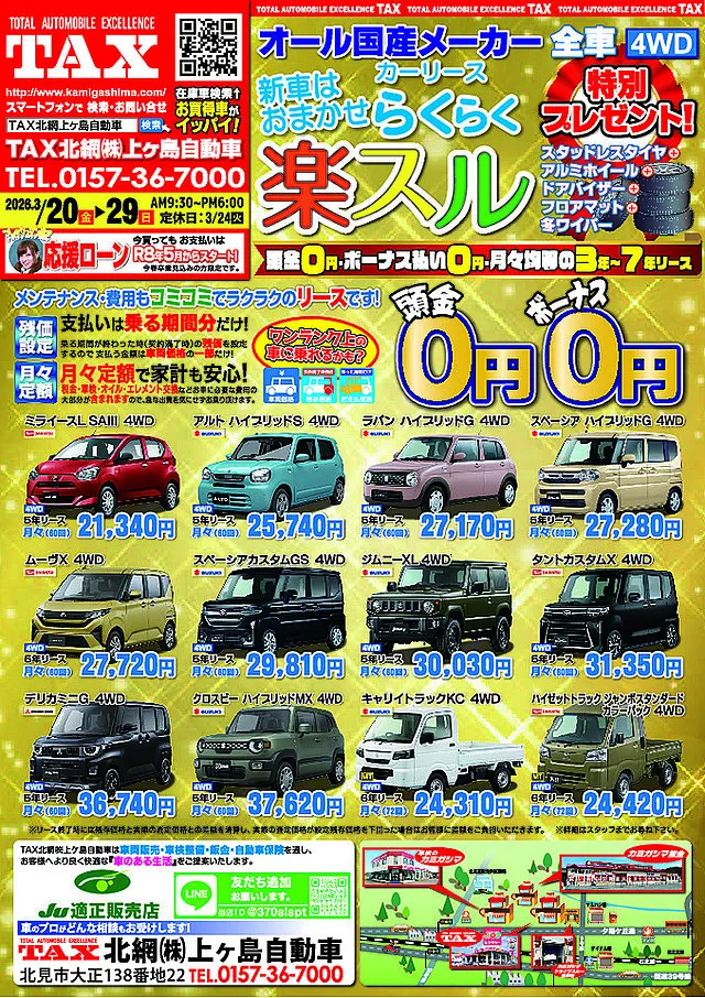 【北見市】月々定額で新車に乗れる カーリース「楽スル」